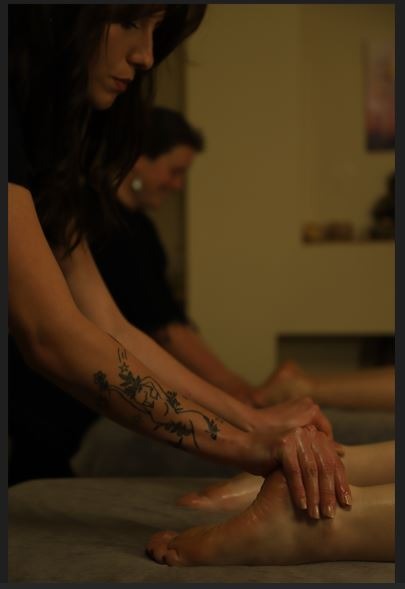 Les massages se feront dans la même pièce, deux tables seront installées l'une à côté de l'autre, et Anne-Lise, la deuxième masseuse, sera présente pour pratiquer le soin en simultané.